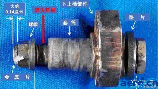 120號航班維修記錄顯示,在事發前已經按照維修程序進行修復。正當調查員一籌莫展時,他們決定對下止擋組件再進行一次系統性檢查。調查員將螺栓逐個拆解后,發現其中一個墊圈不翼而飛。難道正是這個不起眼的墊圈釀成了大禍?