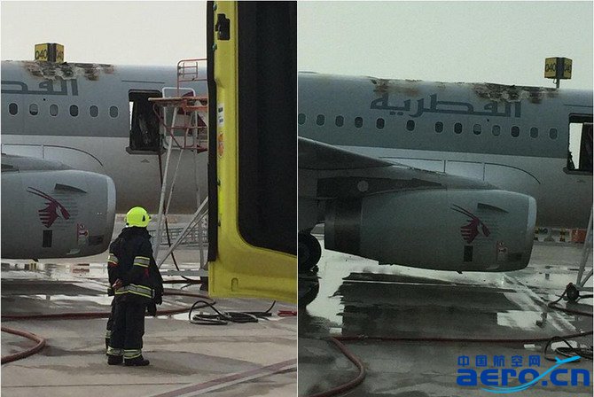 卡塔爾航空對客機進行維護時起火 飛機嚴重受損