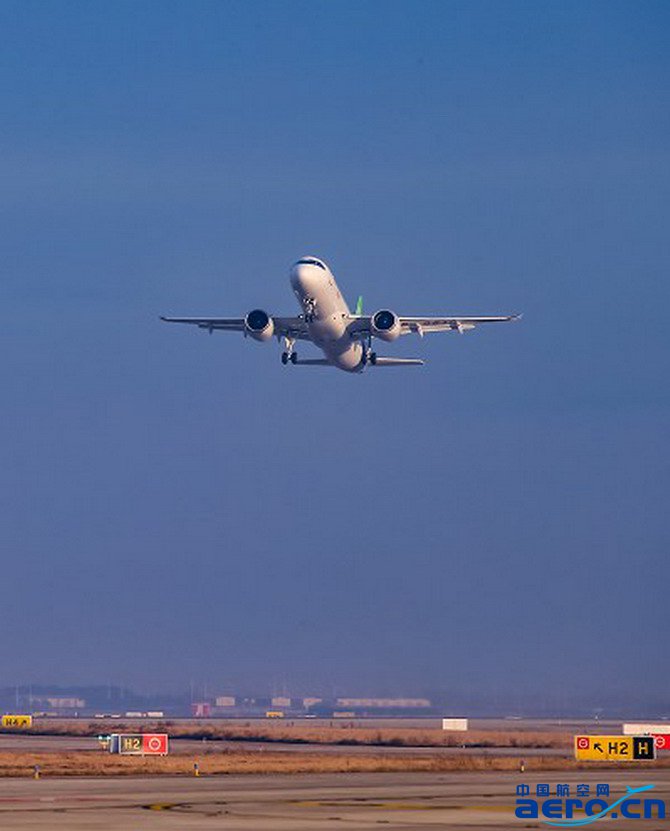 :2018年1月14日,C919大型客機第二架機迎來了進入2018年后的第一次飛行,成功執行一架次初始檢查試飛。