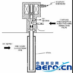1)過熱保護(hù)功能:如果引氣管道內(nèi)的溫度上升,TUBE 中的 STICK 會(huì)膨脹,從而造成內(nèi)部 ROD 的移動(dòng),ROD的移動(dòng)造成 PRV 的 COUPLING LINE 漏氣,一旦漏氣就將開始將 PRV 調(diào)節(jié)至低壓關(guān)閉位置。