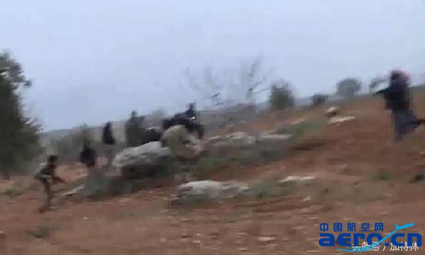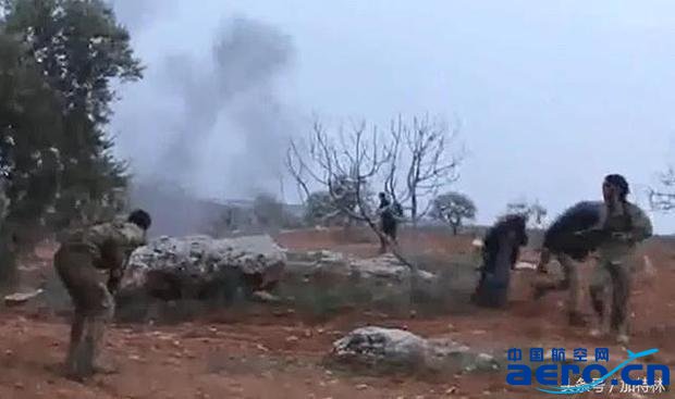 在巨響中,幾道黑煙從亂石后方升起,武裝分子爭相躲避!
