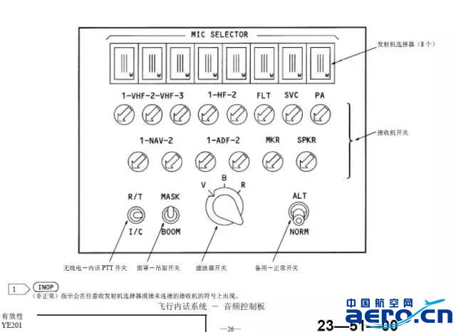 4、看下圖,將ACP上的MASK-BOOM電門置BOOM位,再按壓發話,如果駕駛艙揚聲器內聽到嘯叫聲或雜音,則說明本側的氧氣面罩沒有安裝好,因機組在做航前準備工作時需要測試氧氣面罩而作動次數多,容易發生氧氣面罩沒有安裝好的情況,航線已經多次發生是由于氧氣面罩沒有安裝好而導致的通訊故障,特別是航前,請重點關注。氧氣面罩安裝好后測試,如果故障依舊,則排故繼續。