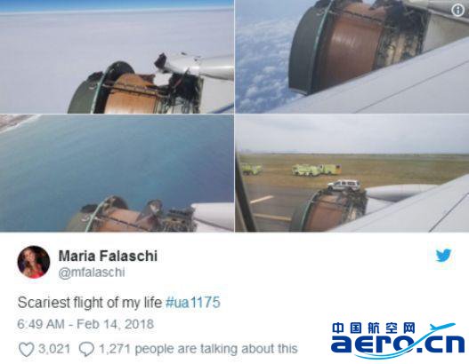 這架飛機所屬的美國聯合航空公司(United Airlines)發表聲明稱,飛機發動機整流罩掉落,事故原因暫未確認。消息稱,飛行員已成功將航班降落。