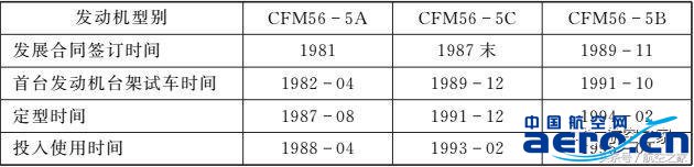 表9、CFM56-5系列的3個(gè)型號(hào)發(fā)展時(shí)間表