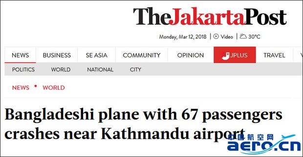 據(jù)了解,這架飛機屬于孟加拉航空,墜毀在特里布萬國際機場跑道東側。機場發(fā)言人告訴加德滿都郵報,飛機在降落時沖出跑道,墜落在足球場。至少17人因飛機受傷被送往醫(yī)院,據(jù)說機上有67名乘客和4名機組人員。