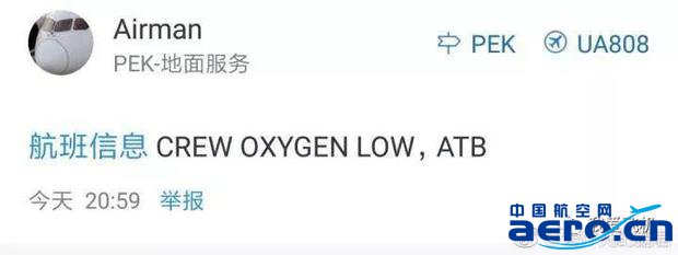據網友透露:掛7700并返航的原因是電腦提示機組氧氣壓力低信息。