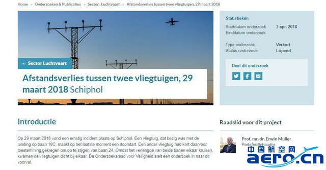 2017年4月,荷蘭安全委員會發(fā)布了一份報告,稱史基浦機場航班量的爆炸性增長,讓安全面臨風險。在發(fā)生多起類似于危險接近的事件(包括另外一起兩架飛機差點相撞事件)之后,該委員會對史基浦機場的情況進行了調查。