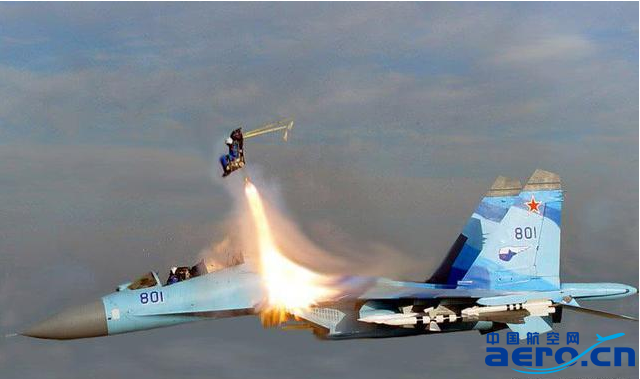 這是801號蘇-35UB執行后座飛行員彈射出艙的瞬間,相當的壯觀。