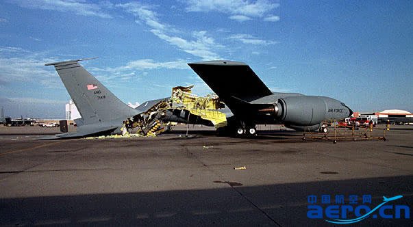 KC-135綽號同溫層油船,是波音公司在其最早的噴氣式運輸機波音367-80的基礎上改裝研制的,是世界上裝備數量最多的空中加油機。該機的首架飛機在1954年首飛,最后一架交付于1965年,至今尚大量服役——換句話說,現在還在的最年輕的KC-135,都有53歲了。