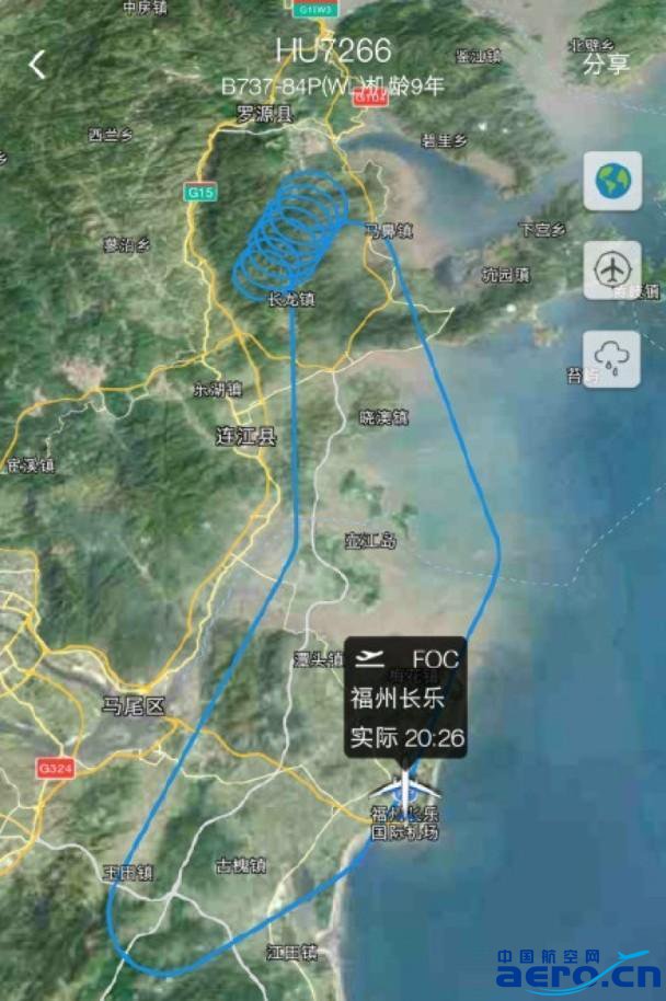 另內地某專門查詢航班資料的科技公司,在微博發布該客機的飛航圖,圖片顯示客機飛到福建連江縣上空時,隨即發出7700代碼(遇上緊急情況),并在上空盤旋約7個圈后才返航,惟海航尚未證實上述圖片,亦未就此回應。