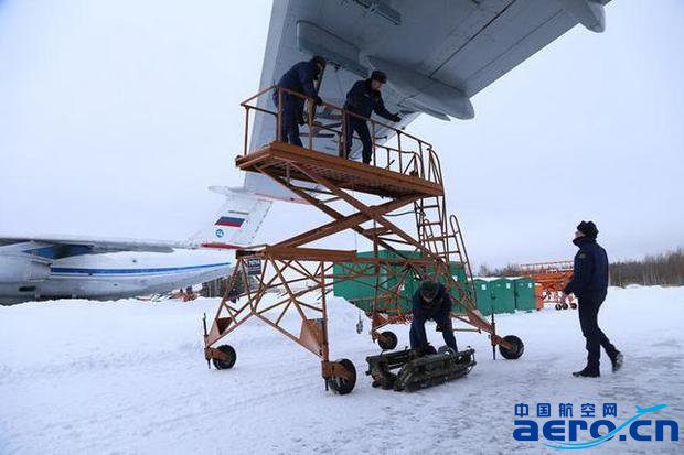 俄軍地勤正在為伊爾-76運輸機安裝彈藥掛架。