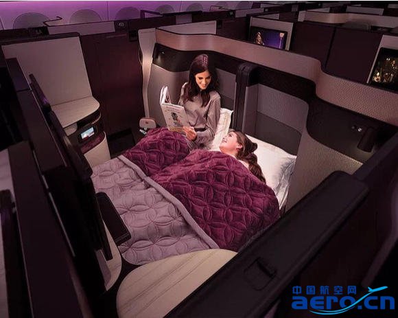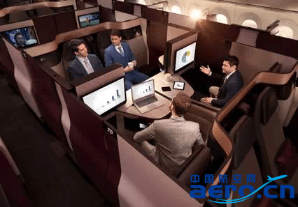 Qsuite 提供的4座合并及雙人床配置商務艙座椅為業內首創。(效果圖)