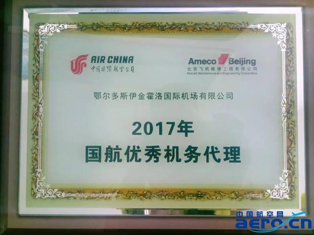據了解,該獎項是國航通過對長江以北地區一百多家所屬機務維修代理航站中,在安全保障、航班正點率、故障處置能力、排故資源協調能力、冬季除防冰保障能力以及航班放行正常率等方面進行綜合評比,共評選出2家“2017年國航優秀機務代理”。鄂爾多斯國際機場各方面均表現突出,并獲得此項榮譽。