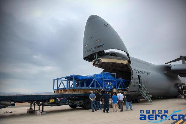 綜合裝配線擁有該公司獨有或受創技術作為支持的最先進設備,它將機器人技術、自主系統、虛擬3D技術和預測自動化技術整合到中段機身生產的最前沿。圖為諾格公司生產的F-35中段機身由C-5運輸機運載進行最終裝配。