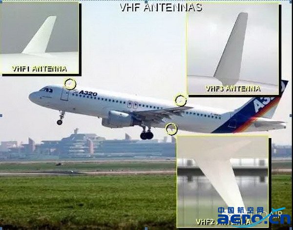 甚高頻天線共三個(gè),呈刀形。1、3號(hào)甚高頻天線在機(jī)身上部,2號(hào)在下部。