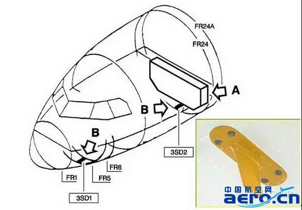 雷達(dá)罩下方共有兩個(gè)固定鎖扣,屬快卸鎖扣,檢查確保鎖扣鎖好在位。導(dǎo)電條沿雷達(dá)罩周向共有八根,注意檢查上面是否有雷擊發(fā)生。