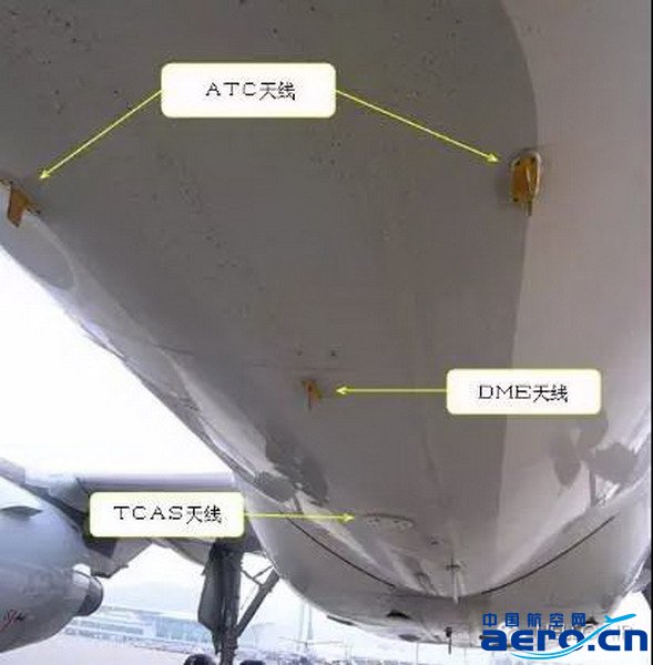 ATC天線在飛機(jī)前部,上下各有兩個(gè),是黃色小刀型天線