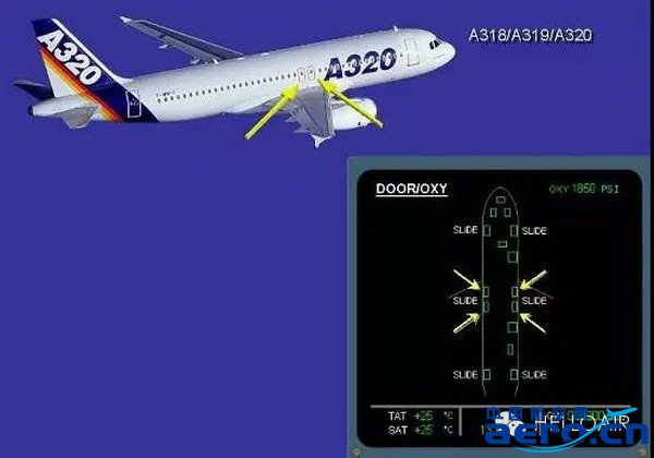 對于320飛機,應(yīng)急門共四個,飛機左右各兩個,位于大翼上側(cè)。對于319飛機,應(yīng)急門共兩個,飛機兩側(cè)各一個,位于大翼上側(cè)。