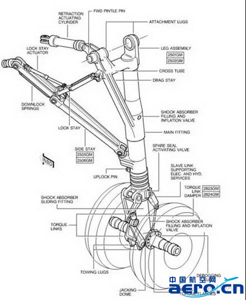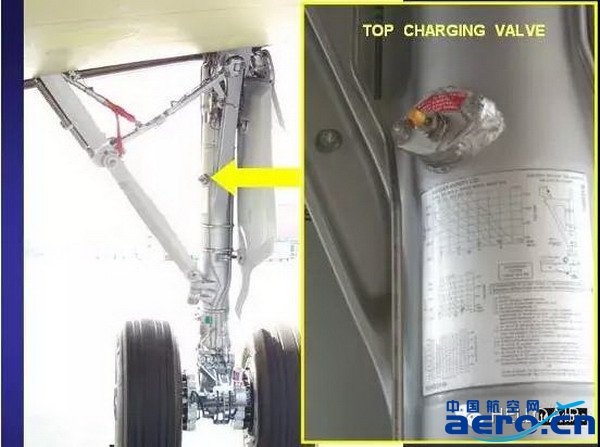 5.檢查主起落架艙門(可視范圍內)無損傷;主起落架扭力桿、扭力桿阻尼器、阻力桿、側撐桿、上鎖機構無損傷和滲漏。