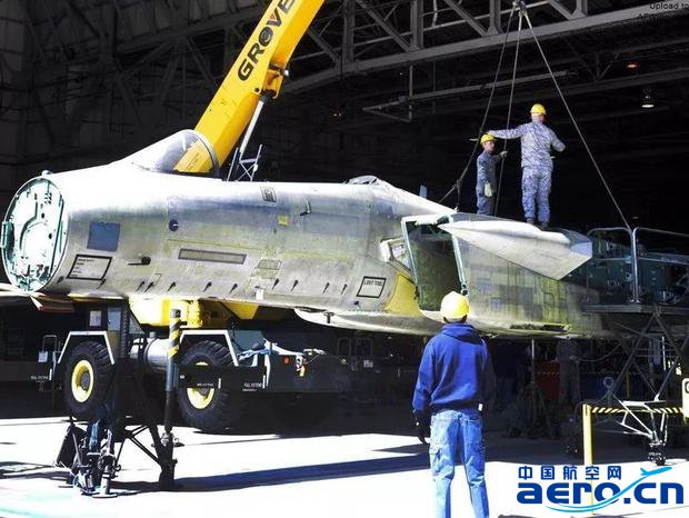 用于疲勞測試的F-15C機身正在吊裝,準備運往波音公司,時間是2010年