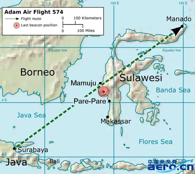 “574”航班從印度尼西亞爪哇島的泗水起飛 預定飛往蘇拉威西島的萬鴉老