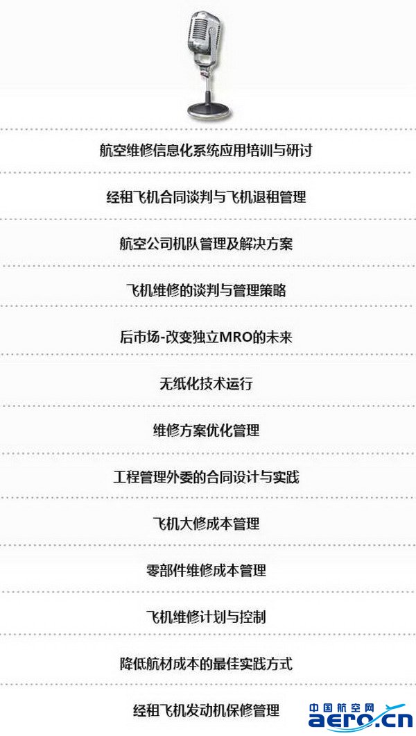 第四屆中國航空維修成本管理大會(huì)將于2018年11月15日至16日在上海虹橋機(jī)場再度隆重舉辦。作為國內(nèi)專業(yè)的航空維修售后年度盛會(huì),大會(huì)圍繞當(dāng)熱點(diǎn)內(nèi)容,以“提升工程管理,優(yōu)化維修成本”為主題,重點(diǎn)從MRO熱點(diǎn)和工程管理熱點(diǎn)兩個(gè)方面,邀請(qǐng)國內(nèi)外的航空公司、維修公司、OEM 廠商及專注于航空維修成本管理的專家、學(xué)者及個(gè)人來為分享他們的經(jīng)驗(yàn),協(xié)助國內(nèi)航空公司解決以上疑問。