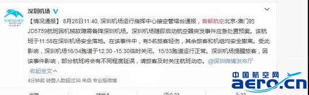 另外,受事故影響,深圳機場16/34跑道預計在12:30-15:30臨時關閉。