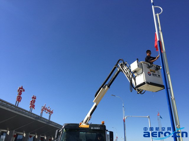 中國航空網通訊員 俞國瑞訊:9月29、30日兩天,正值祖國成立69周年華誕來臨之際,富蘊可可托海機場精心“裝扮”,在航站區內道路兩側、候機樓等區域架設國旗,掛上燈籠,喜迎國慶節的到來。