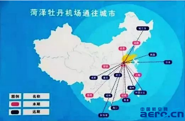 據了解,菏澤機場本期有6條航線,依次為:北京、上海、沈陽、西安、深圳、昆明。基本覆蓋了東北、正西、東南、西南等4個主要方向。遠期規劃為哈爾濱、成都、武漢、福州、重慶、香港、桂林、?谶有中國臺北等九個主要城市,并增加了韓國、日本、新加坡等三個國際航班。