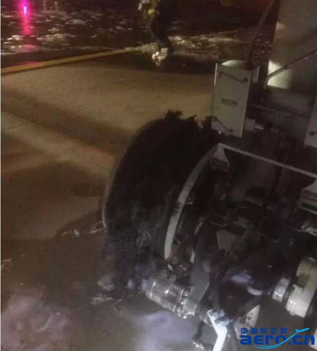 初步了解到的情況是飛機起飛時,防滯剎車系統卡阻導致爆胎,消防部門出動噴灑泡沫防止起火。受輪胎碎片影響,機身多處出現損傷。浦東機場一條滑行道受此影響關閉。