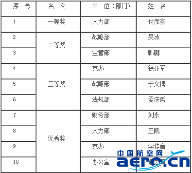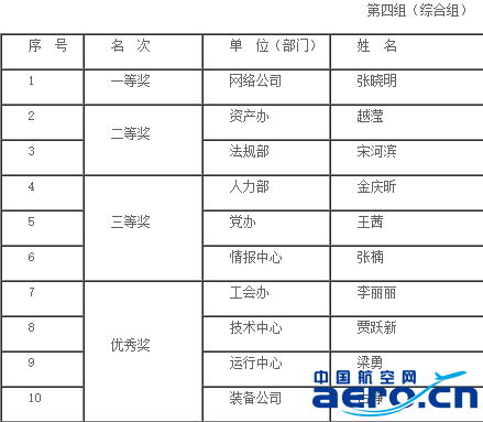 第四屆空管局直屬機關“安康杯”辦公技能大賽名次