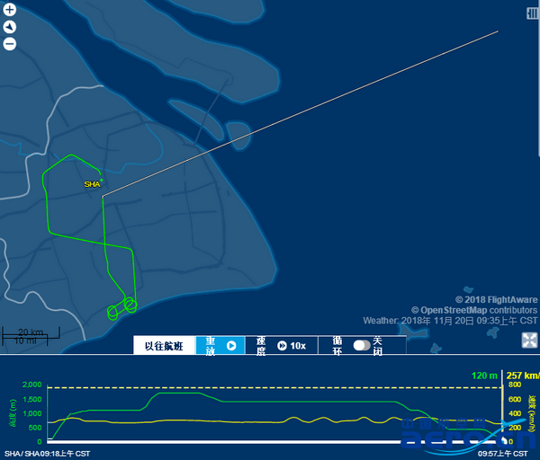 11月20日,FM815飛行軌跡圖。來源:flightradar