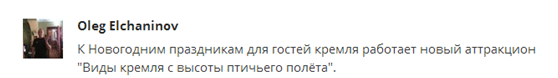 俄網民:克里姆林宮專門為游客推出新年服務“從飛鳥的視角觀看克里姆林宮”。