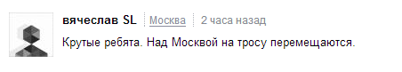 俄網民:炫酷的家伙們!掛著繩子在莫斯科上方移動