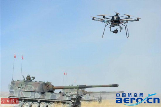 土耳其引進K-9自行火炮,主要是看重了其射程遠和爆發射速能力,比較適用于伴隨土軍裝甲部隊行動,壓制隱藏在山區的庫爾德工人黨武裝。圖為2015年10月,土耳其軍隊舉行代號為”Ate Serbest 2015“大型軍演期間,土軍使用多旋翼無人機拍攝國產T-155(韓國K-9出口型)自行火炮野外推進。