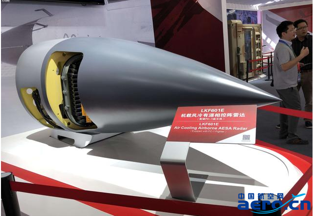 LKF-601E是國內專為JF-17梟龍戰機定制的風冷有源相控陣雷達。有源相控陣雷達因為散熱量極大,需要專門配套安裝液冷/油冷散熱系統,所以很多戰機受限于機體原始設計,無法升級搭載有源相控陣雷達,典型的例子就是“殲-11B”。而風冷式的LKF-601E則只需要在機頭附近開設引氣口即可解決散熱問題,換裝到梟龍戰機上不需要做多少改進,非常方便。
