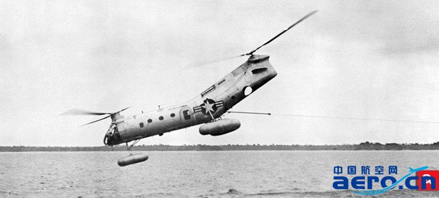 其實早在“馱馬”之前,Piasecki就已經成功將其研制的一系列縱列式雙旋翼布局的直升機兜售給美國海軍,其中就包括“馱馬”的前身——于1944年啟動的“HRP-1”項目,“HRP-1”的設計特點就包括了翹起的機身尾部以及分離布局的縱列雙旋翼。