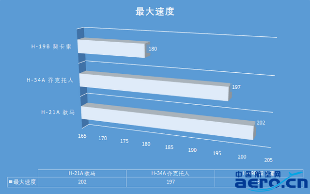 為滿足H-21的縱列式雙旋翼,其配備了更強勁的動力裝置,這使其比起較小旋翼的直升機有更高的最大速度。大型運輸直升機的速度后來最高達到了約250千米/小時(如渦軸發動機驅動的CH-47),一般認為這一速度是常規直升機的設計極限。