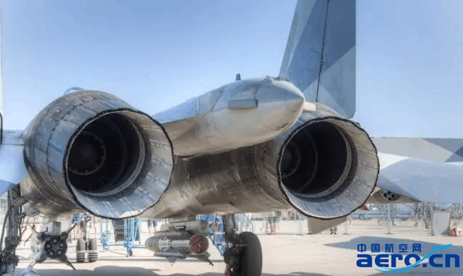 圖為蘇-35戰(zhàn)斗機(jī)的尾噴口特寫。AL-41F1S發(fā)動機(jī)同蘇聯(lián)五代機(jī)PAK FA目前使用的AL-41F1 發(fā)動機(jī)出自同門,兩者有許多共通之處,且推力的差別不太大。AL-41F1S發(fā)動機(jī)的推力為142千牛,AL-41F1 發(fā)動機(jī)的推力為147千牛。