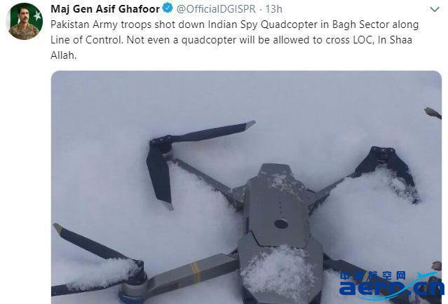 1月2日,巴基斯坦軍方發言人加富爾少將通過推特宣稱,巴軍擊落一架印度軍方的無人機。