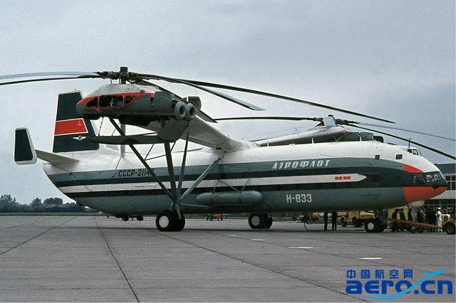 米里設計局的專家們還對三旋翼甚至四旋翼布局進行了分析,但并未采用這兩種布局。因為分析顯示,兩副旋翼就能夠保證所要求的噸位。最終,決定采用米-6的發動機組件。但是如何設計連接兩副旋翼的梁(橫向還是縱向),當時,國內外大多數權威專家都認為,大型起重直升機應采用縱列式布局。為了研究縱列式布局的優點和缺點,進行了大量的相關試驗。