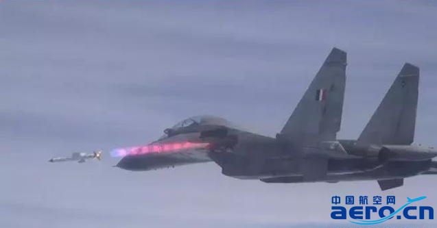 翼下外掛4枚“神兵”導彈的印度空軍蘇-30MKI戰斗機和試射該導彈的蘇-30MKI戰斗機。印度對該導彈的命名源自梵文Astrā,意思是具有超自然力量的武器,由特定的神管理。因此我們翻譯為“神兵”。印度,以及伊朗等國對自身許多武器的命名都以印度的神話或特殊的文化為基礎,就像我們的“嫦娥”、“玉兔”等航天器以及“入云龍”、“霹靂火”、“黑旋風”等直升機一樣。我們今后都將優先采用意譯方式(印度國防部國防研究與發展組織圖片)