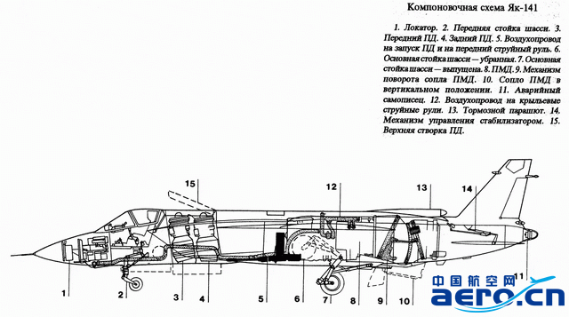 它的R79V-300型渦扇發動機,加力推力高達15噸,是前蘇聯解體前推力最大最先進的戰斗機用渦扇,被認為是中國發展渦扇-15時參考的重要藍本,它向下90度偏轉的三軸轉向推力矢量噴管申請了專利,美國研發F-35B主發動機時,也是購買了專利許可,這就是F-35B“抄襲”雅克-141說法的由來,不過雅克-141采用了2臺RD41型升力發動機,結構上要比F-35B的升力風扇更重,且對飛行甲板有燒灼。