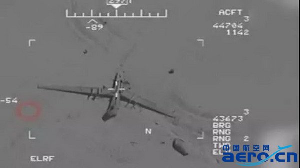 視頻似乎只播放一個片段,一架MQ-9“收割者”武裝無人機在操作員明顯失去對其控制后墜毀。之后,該無人機在墜地后被又被空襲摧毀。