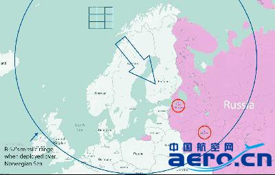 圓圈為美媒估算的美轟炸機在挪威海演練時的打擊范圍