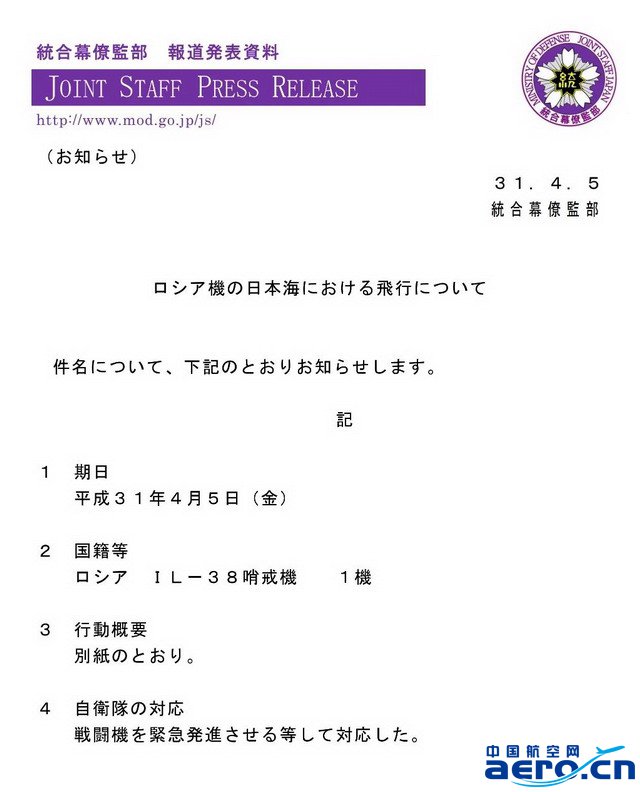 4月5日,俄羅斯海軍航空兵一架伊爾-38反潛機赴日本海開展飛行訓練,俄方反潛機在韓國東部、北九州北部空域進行飛行,期間并沒有侵犯日本領空,日本航空自衛隊緊急升空進行應對。