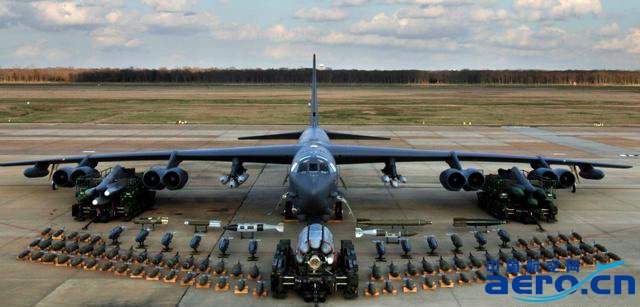 B-52則是一種可以執行各種任務的遠程重型轟炸機。轟炸機能夠在海拔高達50,000英尺(15,166.6米)的高亞音速下飛行。它可攜帶具有全球精確導航能力的核武器或精確制導常規彈藥。