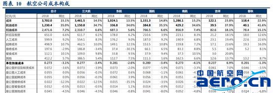 從絕對值看:東航為三大航最高,單位扣油成本0.281元,略高于國航的0.28元,高于南航0.273元。春秋與吉祥單位座公里成本分別為三大航均值的73%及85%。