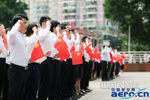 集團團委書記彭珺帶領(lǐng)大家重溫入團誓詞。會場的電子屏幕,實時展現(xiàn)了主會場300余名來自飛行、客艙、機務(wù)、保衛(wèi)、地服等矩陣單位、集團機關(guān)以及全資合資公司的團員青年,與全國各分會場的上萬名團員青年紛紛舉起右手,面向鮮紅的團旗集體重溫入團誓詞的盛況。