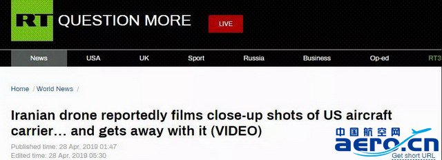 RT稱,這段視頻的拍攝距離非常近,以至于可以輕易分辨出航母上停放的E-2C偵察機和F/A-18戰(zhàn)斗機機翼上的數(shù)字,視頻中還對這些飛機進行了一些說明。